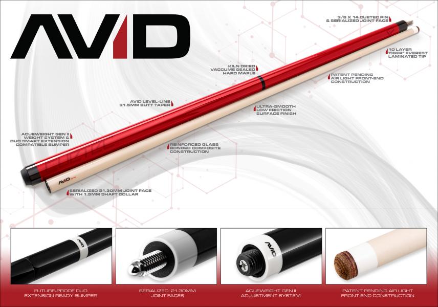Izdelane so iz najboljšega razreda sušenega v peči in vakuumskega zapečatenega trdega javorjevega lesa ter opremljene z najnovejšo nizko-odklonsko konico AVID 12.75, so biljardne palice AVID Era zasnovane, da pustijo svoj pečat v igri, saj igralcem nudijo tehnologijo in zmogljivosti, potrebne za uresničitev njihovega potenciala danes in v prihodnjih letih.